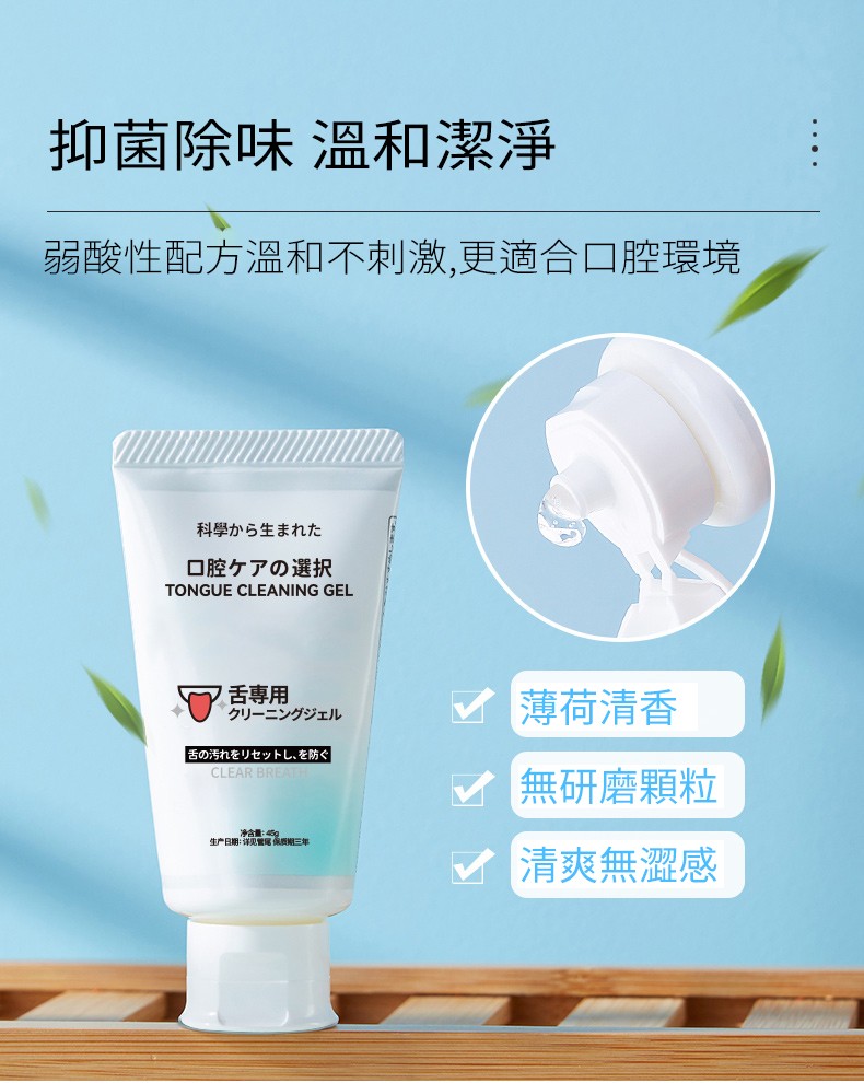 【日本原裝】進口舌苔清潔啫喱凝膠膏,有效避免口臭就要從根本做好舌頭護理幫助清潔舌苔,淨化口氣不添加研磨劑的溫和透明凝膠淡雅薄荷香,建議搭配舌苔清潔器的去口臭神器可以清潔牙刷無法解決的舌頭髒污,對於解決口腔異味問題十分有幫助。